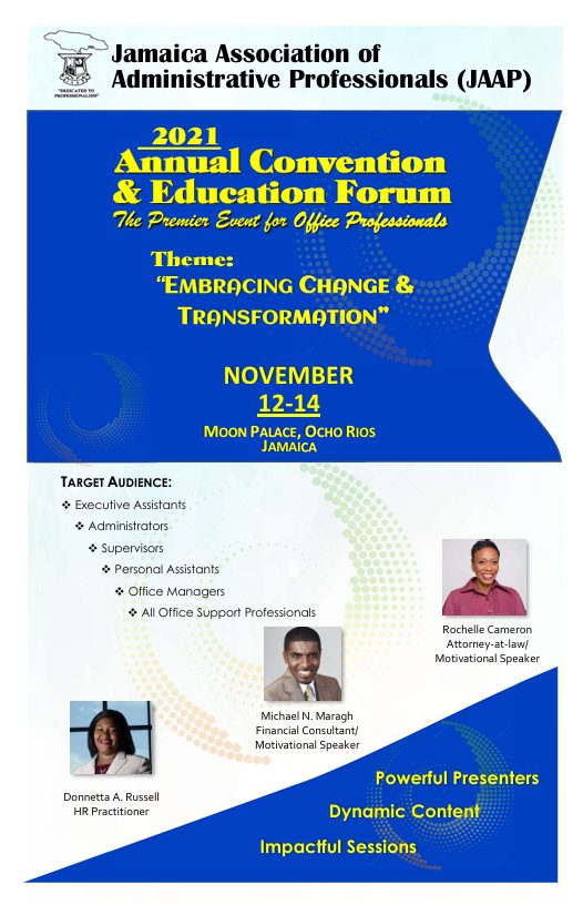 The Annual Convention and Education Forum held on the first weekend of October. This event comprises a seminar and workshops specially organized for administrative professionals across the island.
